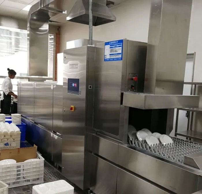 酒店是一個公共的供人們吃飯和娛樂的地方,酒店的后廚每天都必須清洗大量的餐具,在飲食高峰它的餐具清洗量更大,現在很多酒店都會出現同一個問題那就是招收洗碗工困難,另外就算招到洗碗工餐具清洗的費用支出太多,為了更好解決這些存在的問題,現在很多的酒店都使用上了洗碗機,也就是酒店洗碗機。