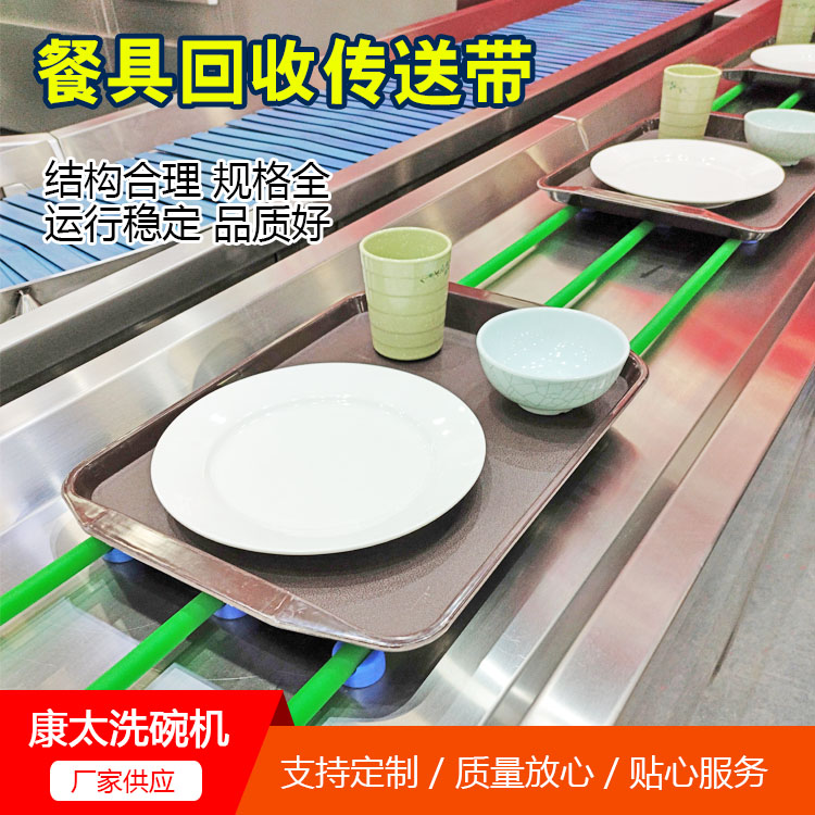 餐具回收傳送帶一般是在大型的食堂或者酒店餐廳單機(jī)里會(huì)見到,搭配起洗碗機(jī)是一種很好的餐具清洗方案。