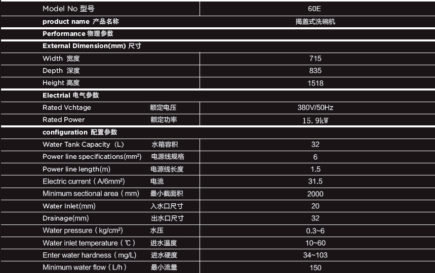 (720碟/小時(8寸碟),1000杯/小時(25格/筐) -清洗速度60秒/筐且進水溫度小于25°C時 程序設定為受溫度控制 <即「2參數為1 >。